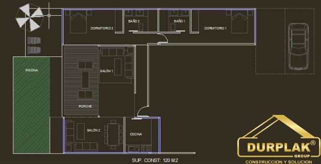 TOTAL SUPERFICIE CONSTRUIDA: 96.96 m2 Cualquier vivienda estándar puede ser modificada tanto en el interior como en la distribución en superficie (ampliación o disminución de espacios). (No incluye el porche trasero o módulos de garaje).