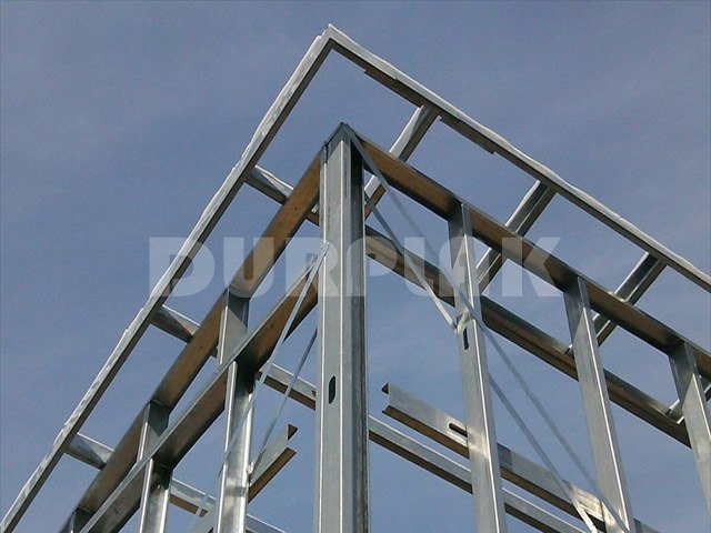Los perfiles de la estructura son de acero galvanizado, es decir acero recubierto con una capa de zinc puro en ambas caras que lo protege de la corrosión. En los sistemas desarrollados en nuestro país, la chapa utilizada tiene un recubrimiento de zinc de 270 gr/m2 en ambas caras, que es 50% superior al exigido por los reglamentos americanos.
